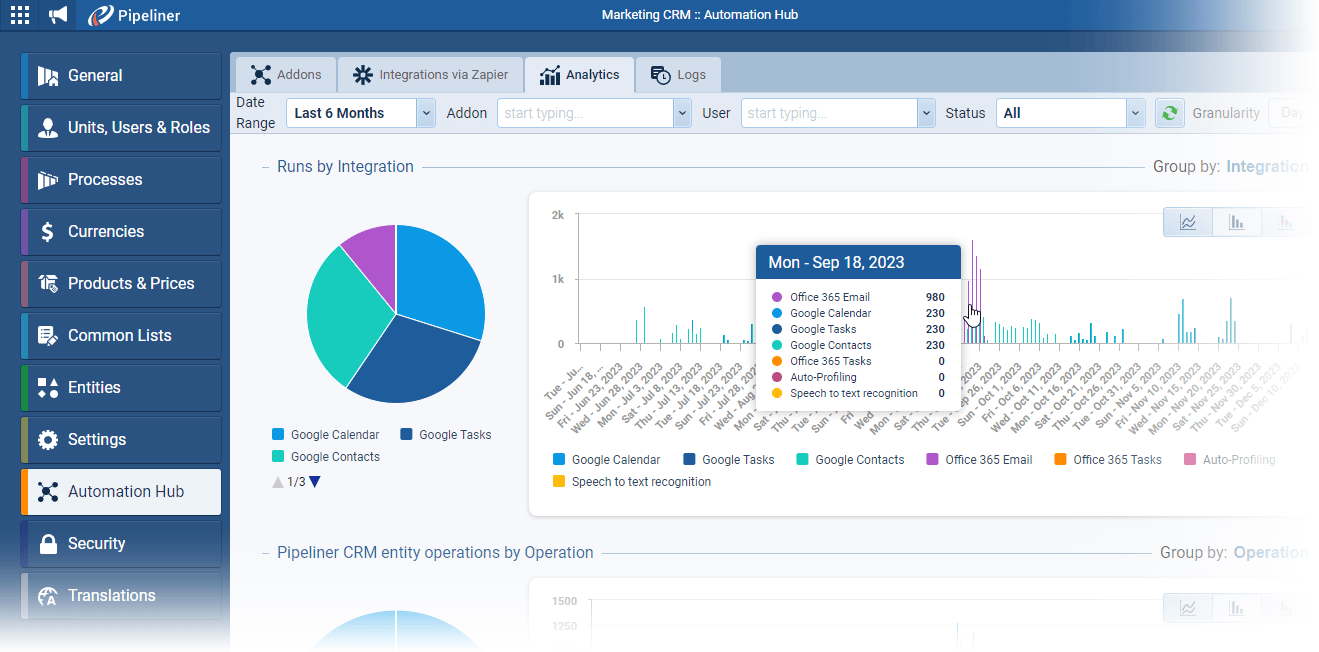 Customers using our Addons and Integrations now have visibility of run analytics and logs from the Automation Hub tab in the Admin Module while Subscription Admins can view similar metricsMetrics Metrics are quantities that are measured and used to: for addons across all their Coevera spaces.