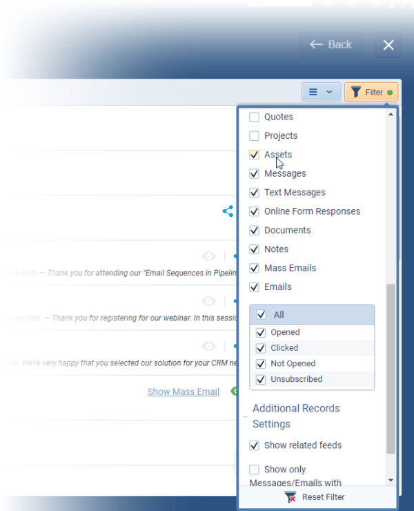 Custom Entities field groupings › as well as “Quotes” and “Projects” — have also been added to “Activity Filters“.