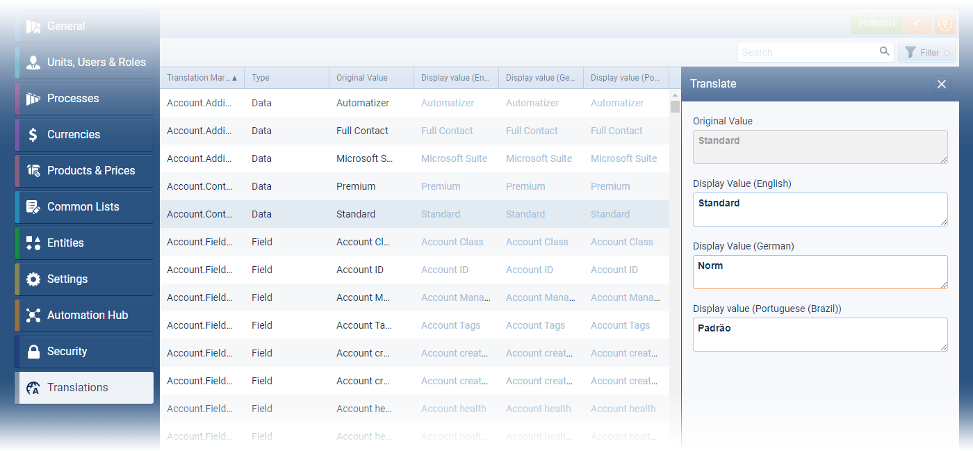 Admins can also define new “Translation Markers” in Portuguese from the “Translations” tab in the “Admin Module“. ⤵