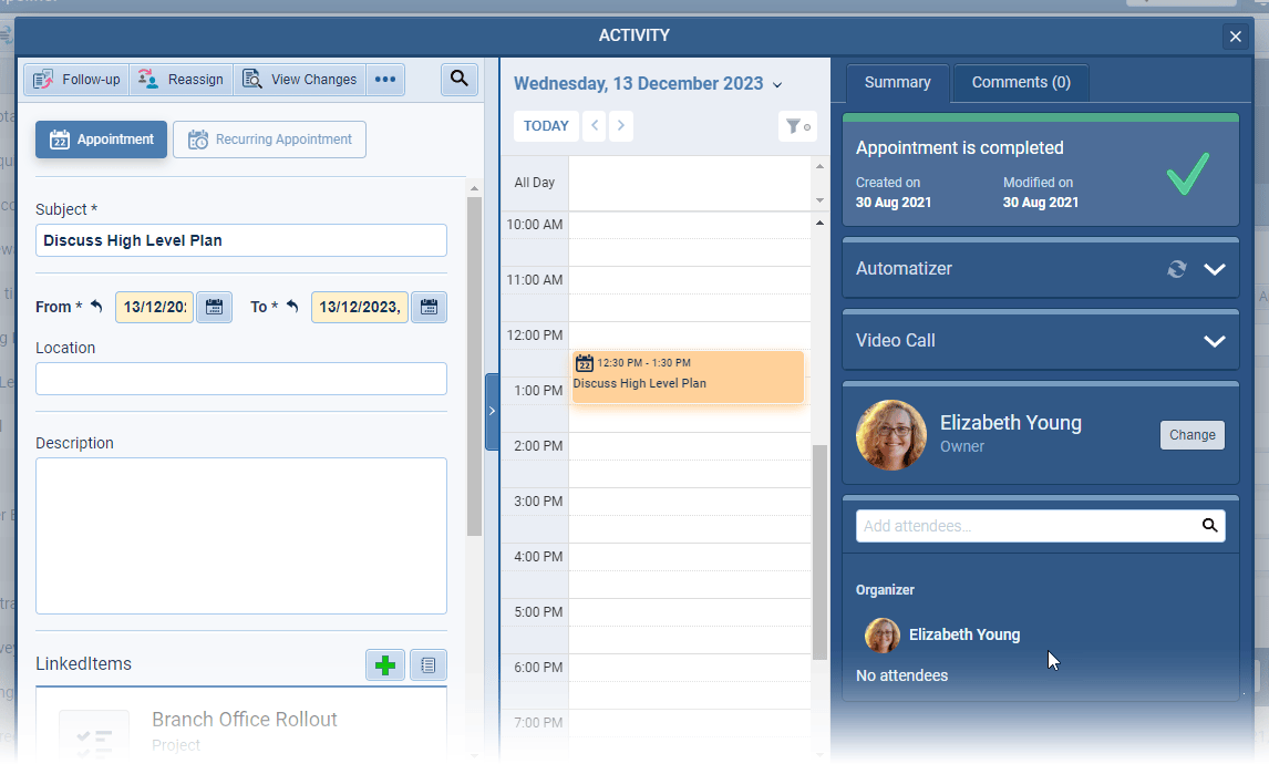 All calendar synchronisations (Google, O365, Exchange) now track the organizer details for appointments. This is designed to prevent duplicate appointments from being created and to reduce unnecessary notification emails if a user has “Activity Notifications” enabled. ⤵