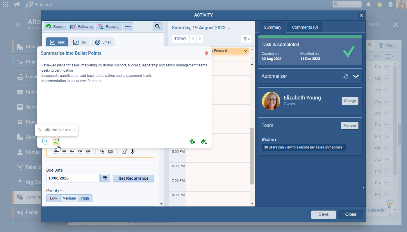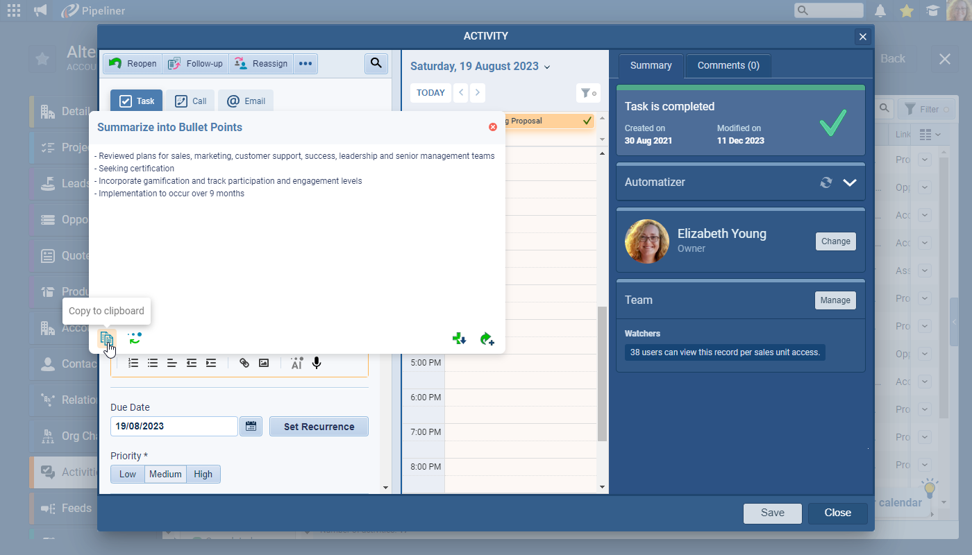 Once the AI Assistant has generated the contentContent Content refers to a material or document released in various forms (such as text, image, audio, and video) and created to inform, engage or influence specific audiences., users have some different options. They can “Copy to clipboard” so the text can be pasted into an email or into another app such as Word or Notepad ⤵