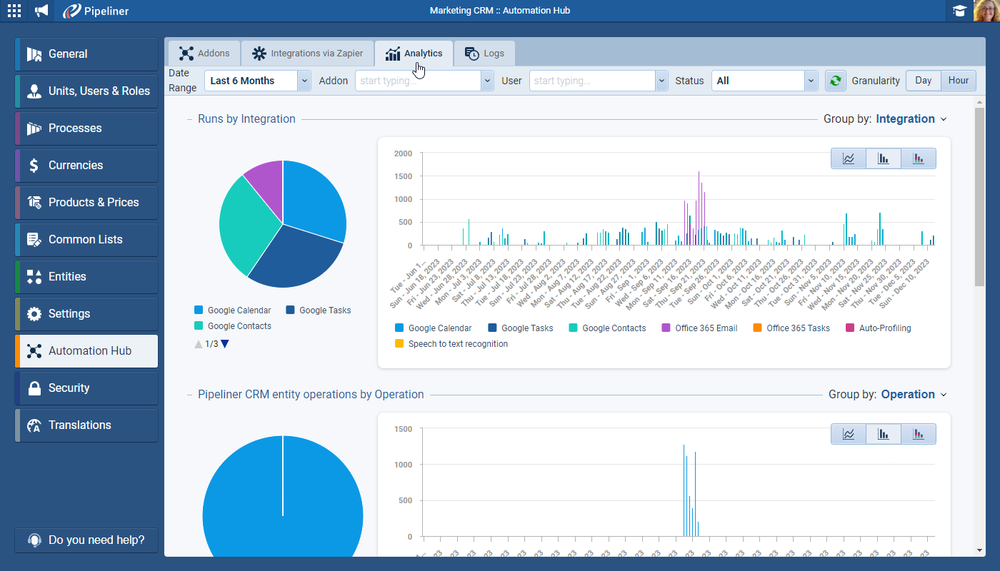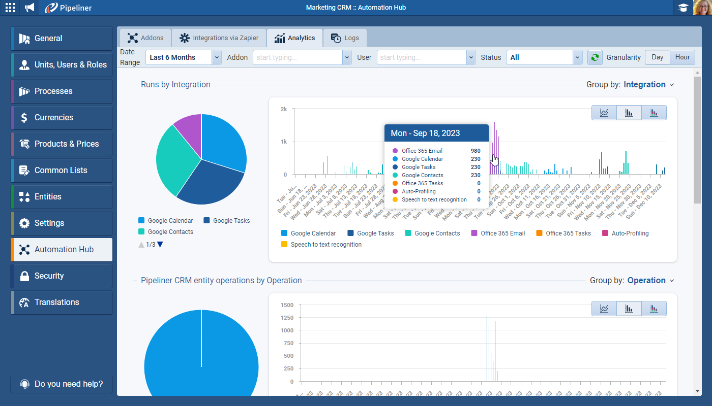 Customers using our Addons and Integrations now have visibility of run analytics and logs from the Automation Hub tab in the Admin Module while Subscription Admins can view similar metricsMetrics Metrics are quantities that are measured and used to: for addons across all their Coevera spaces.