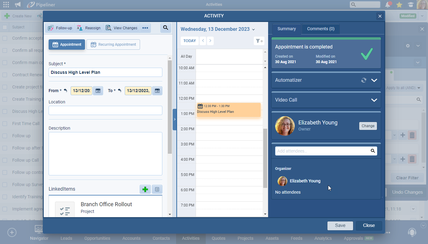 All calendar synchronisations (Google, O365, Exchange) now track the organizer details for appointments. This is designed to prevent duplicate appointments from being created and to reduce unnecessary notification emails if a user has “Activity Notifications” enabled. ⤵