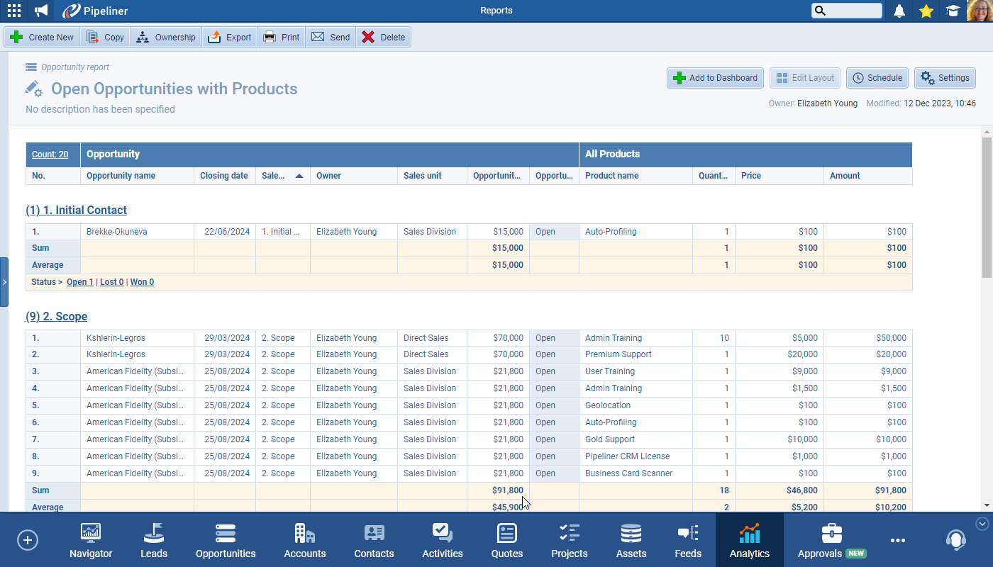 The issue where totals were counted more than once in a multi entity report has been fixed. For example, in an “Opportunity” report which includes “Product Line Items“, the “Opportunity Values” are now correctly totalled. ⤵
