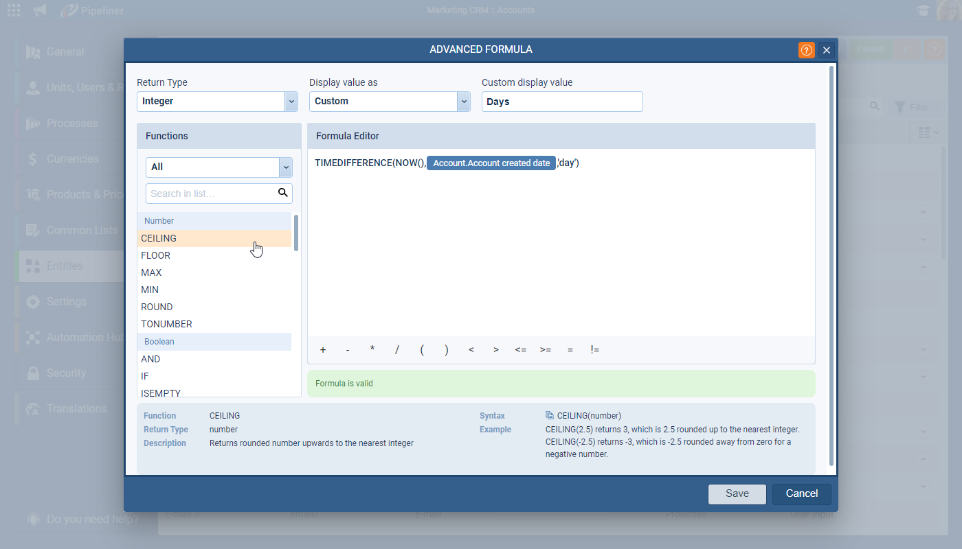 - It will work the same way as the Formula field editor and supports the same functions and fields