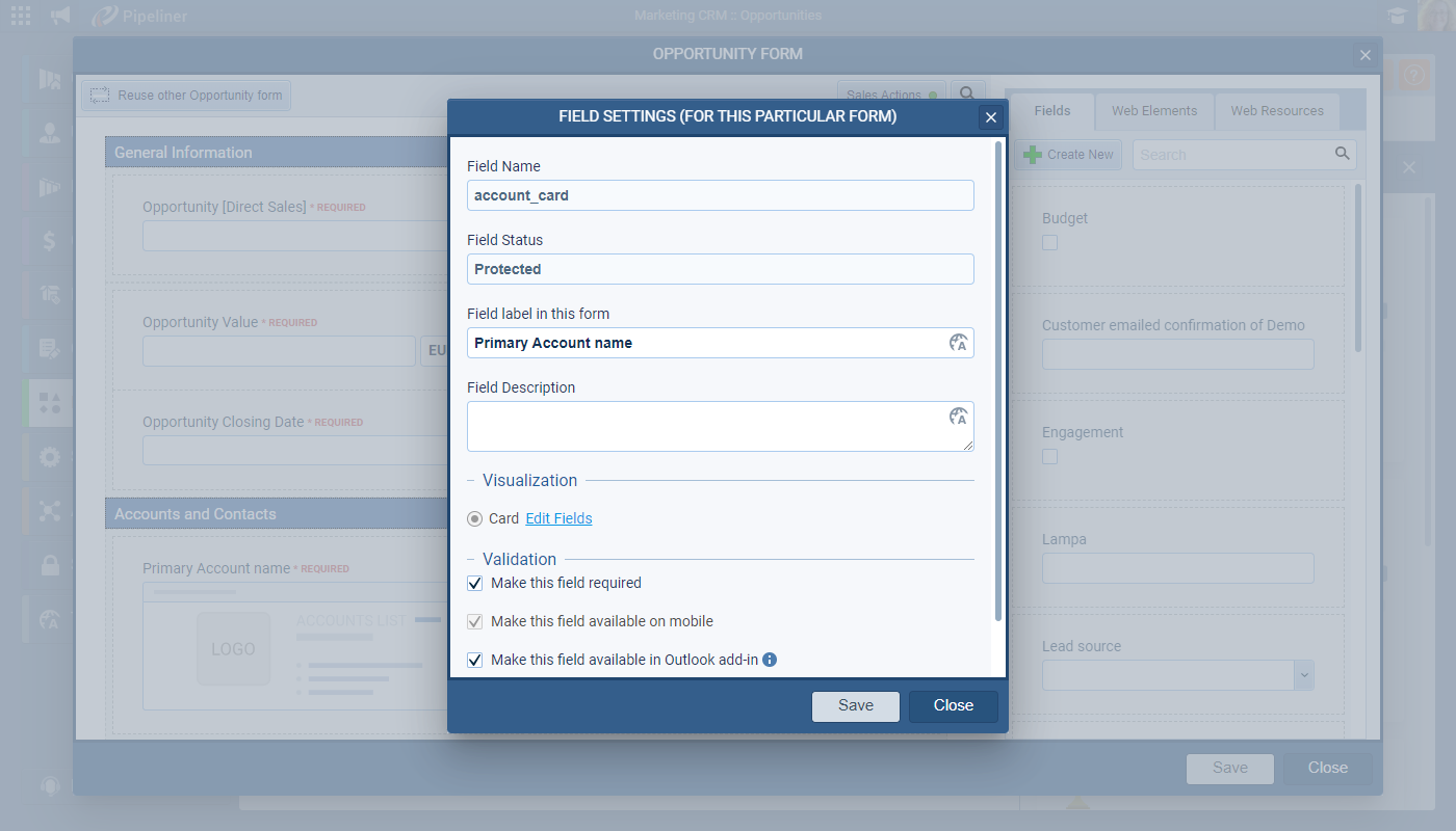 Admins can now update the fields that are visible on the card fields such as “Primary AccountAccount Account refers to a record of primary and background information about an individual or corporate customer, including contact data, preferred services, and transactions with your company.“, or “Primary Contact“,on “Opportunity” or on “Lookup” fields. ⤵